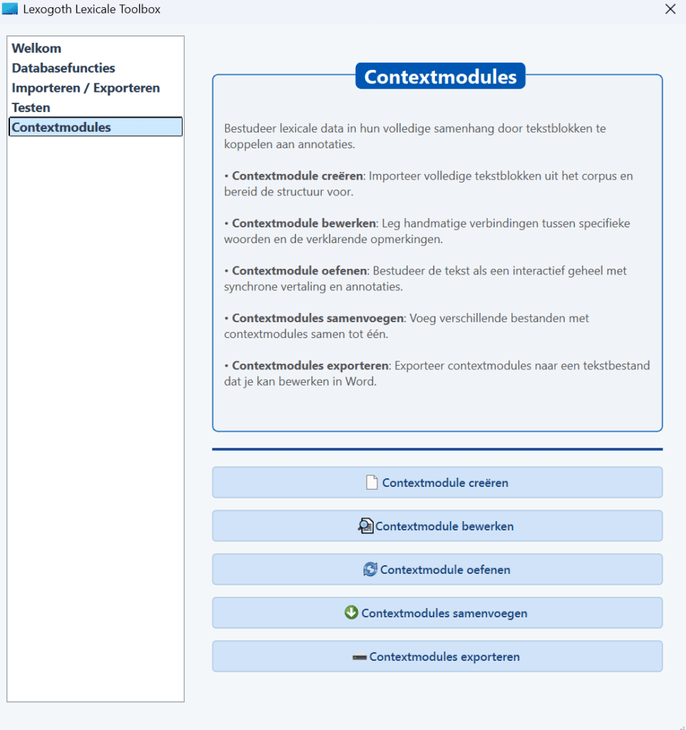 Met de nieuwe module Contextmodules kan je nu gericht groepen chunks samenstellen rond eigen gekozen thema’s of, lexicale of grammaticale patronen.